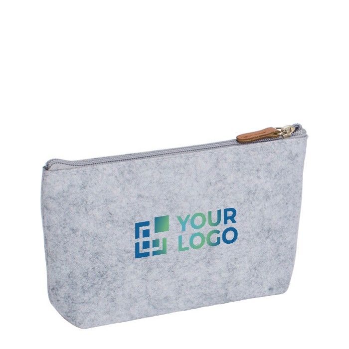 Trousse de toilette en feutre recyclé avec tirette en cuir synthétique