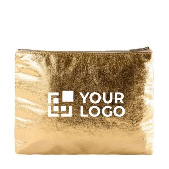Trousse de toilette dorée Sparkle, élégante et personnalisable pour entreprises.