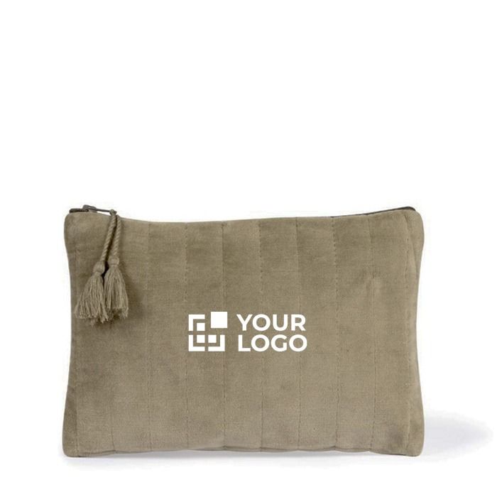 Trousse de toilette en velours élégante, légère et personnalisable.