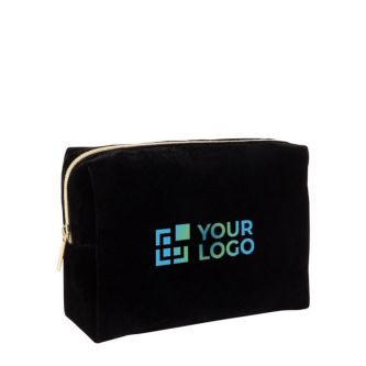 Trousse en velours de polyester avec fermeture éclair dorée 280 g/m2