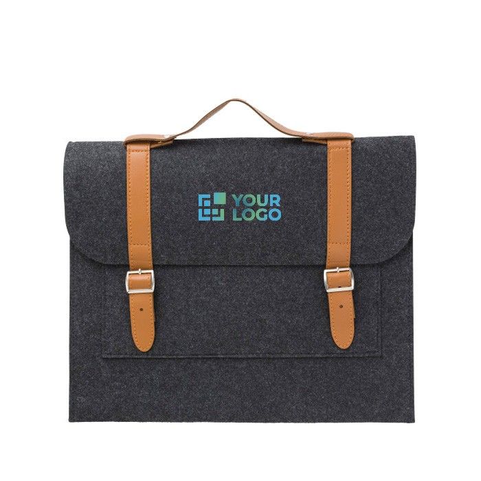 Porte-documents élégant en feutre recyclé avec finitions cuir synthétique.