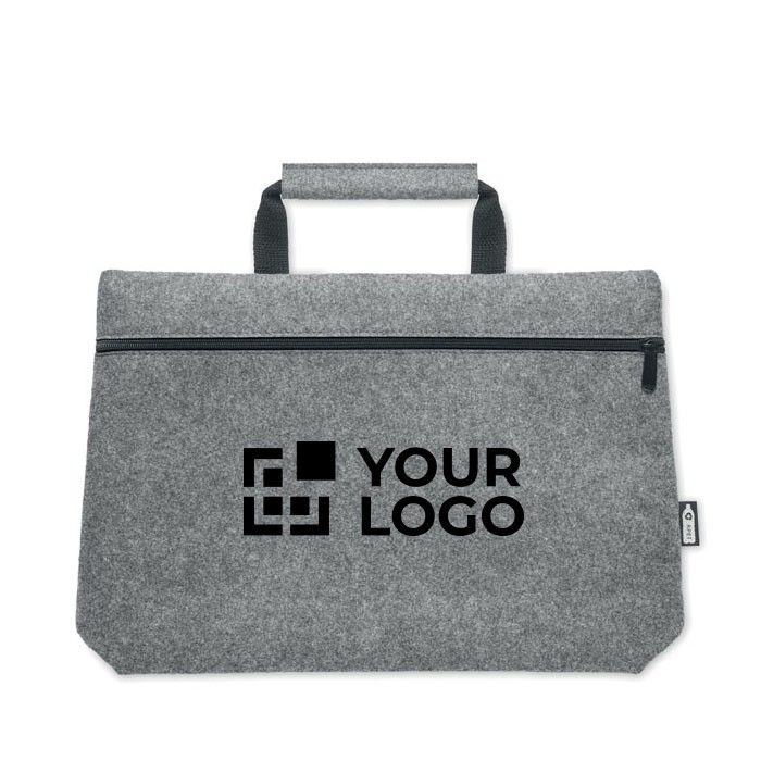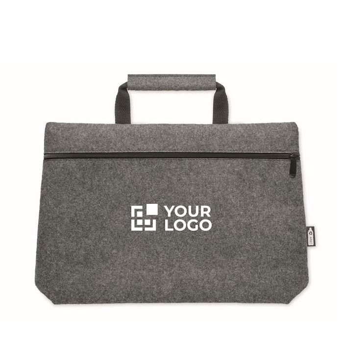 Sacoche feutre RPET 15'' élégante et pratique pour entreprises.