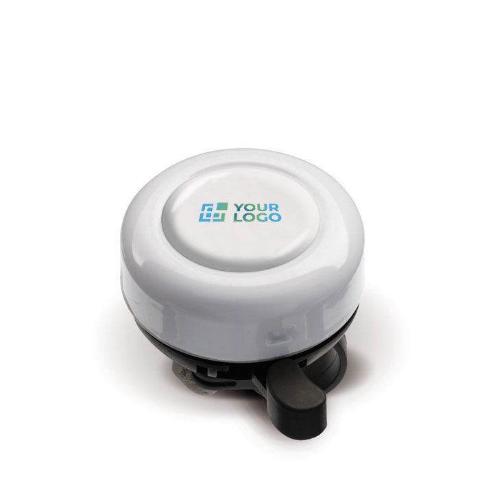 Sonnette vélo en métal blanc personnalisable, idéale pour entreprises actives.