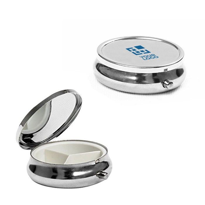 Pilulier rond en métal avec trois sections et miroir Mirror