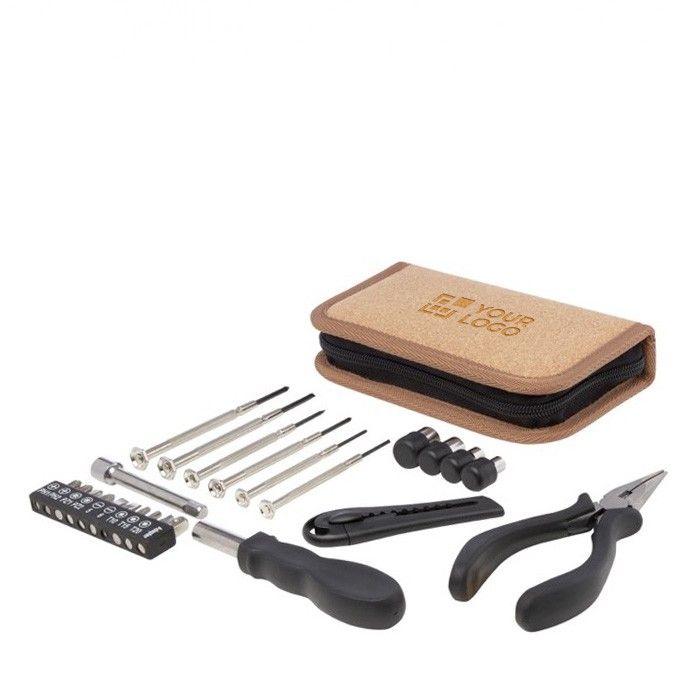 Set de 24 outils en acier et en plastique dans un étui en liège