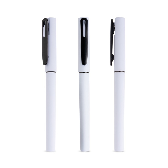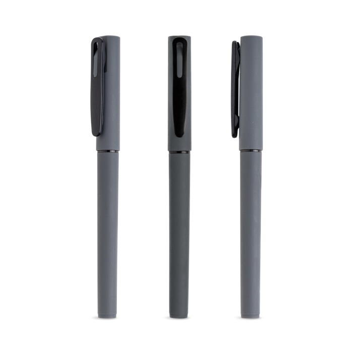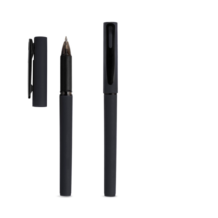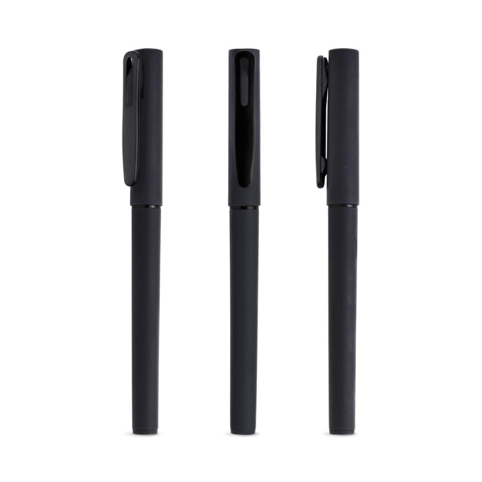 Roller fabriqué en ABS recyclé, avec corps et capuchon finition gomme garantissant écriture douce, précise et confortable. Texture offrant une prise sûre même pour usages prolongés, combinant fonctionnalité et design moderne. Encre noire.