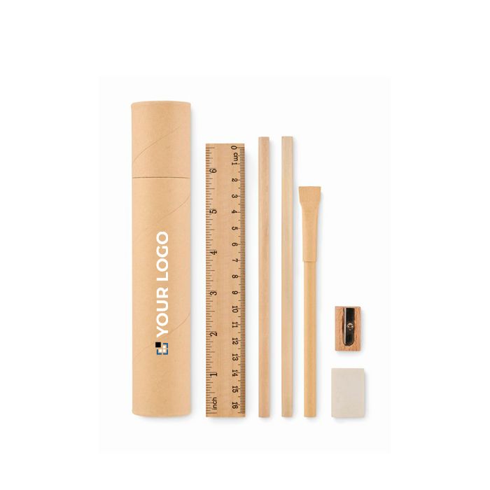 Étui en papier cylindrique avec set complet d’écriture