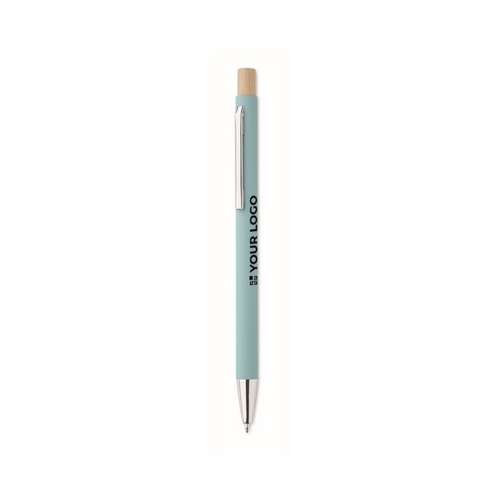 Stylo en aluminium recyclé avec bouton poussoir bambou élégant.