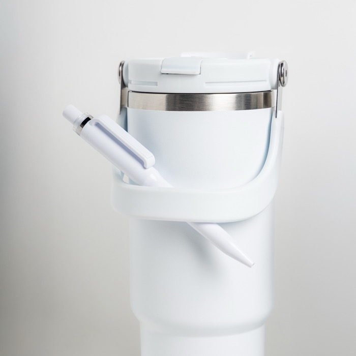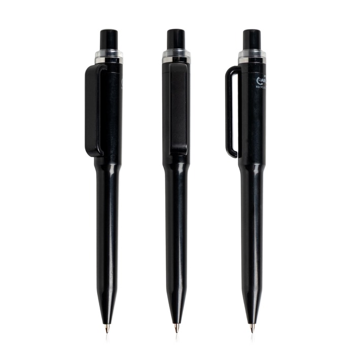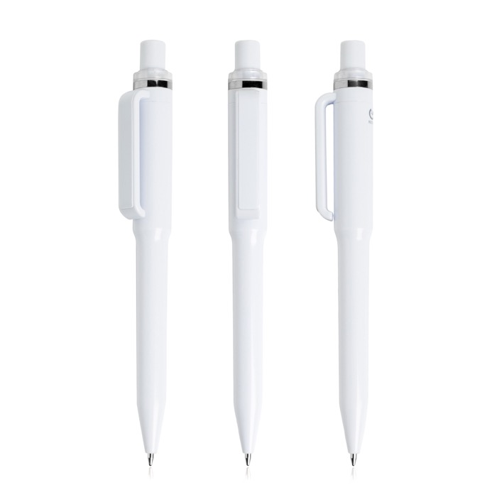 Stylo fabriqué en ABS recyclé avec design moderne inspiré de la collection drinkware. Mécanisme à clic et encre fluide bleue. Disponible en plusieurs couleurs, option durable et stylée pour usage quotidien.