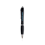 Stylo en plastique océanique avec détails chromés et encre bleue.
