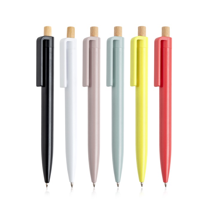 Stylos publicitaires biodégradables avec détails colorés, Encre bleue