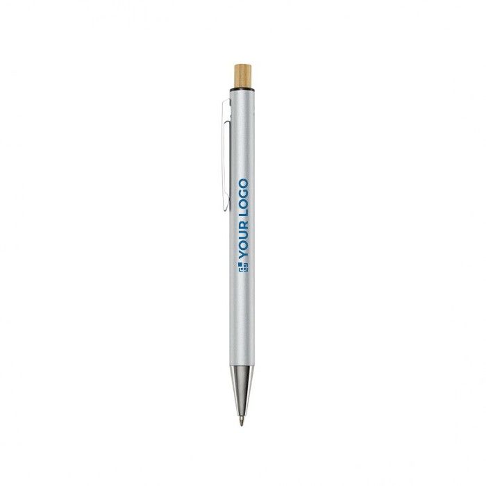 Stylo en aluminium recyclé à bouton-poussoir en bambou et encre bleue