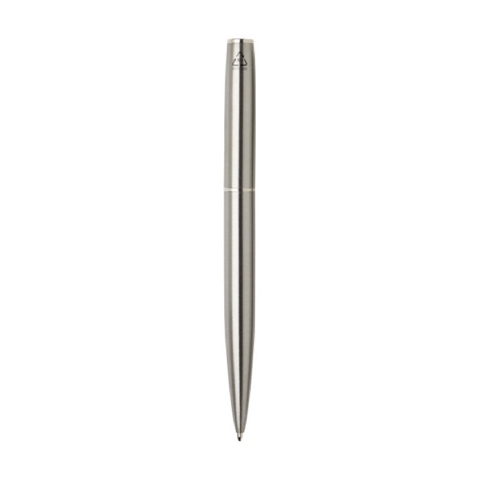 - Ensemble stylo bille et roller en acier inoxydable recyclé, livré dans une élégante boîte cadeau.