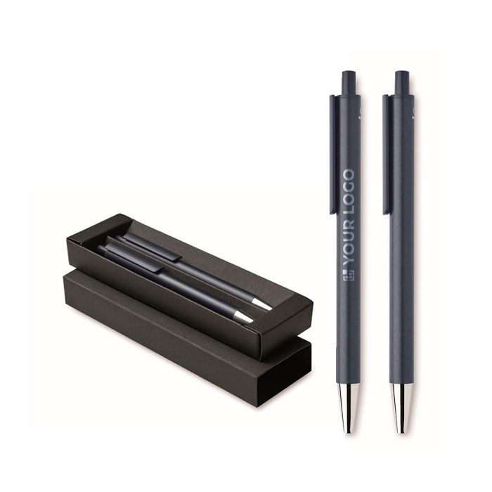 Boîte avec stylo à encre graphite et un autre à encre bleue