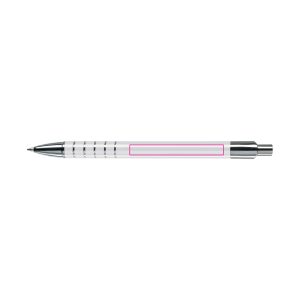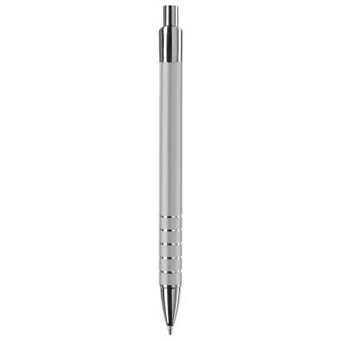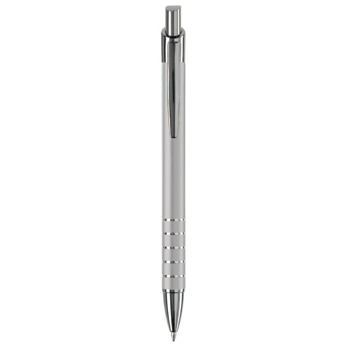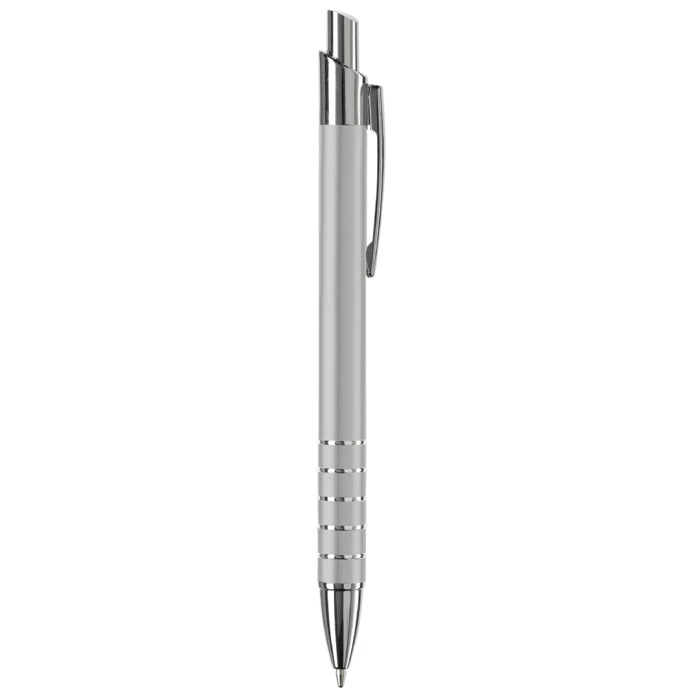 Stylo aluminium mat, cinq anneaux argentés, élégant et professionnel.