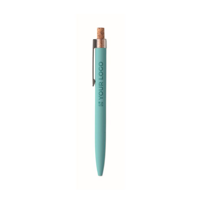 Stylo en aluminium recyclé avec bouton-poussoir en liège, encre bleue