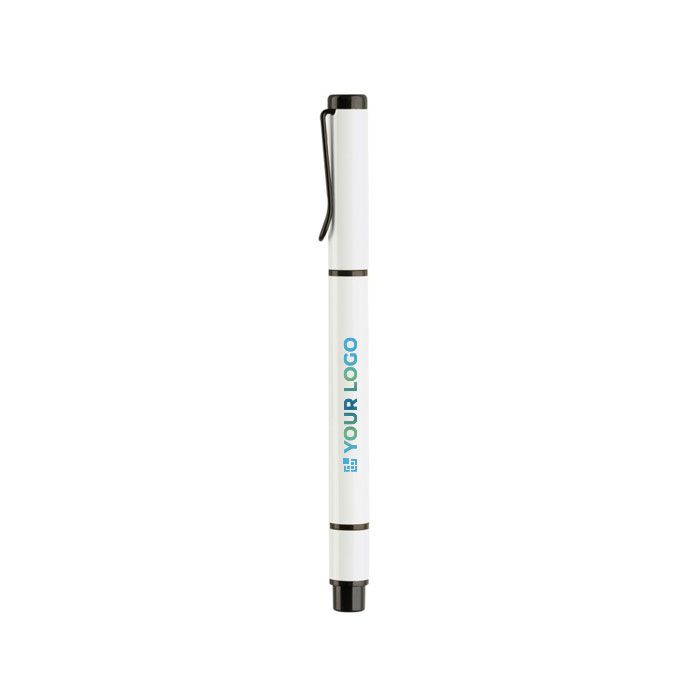Stylo métal 2 en 1 : encre bleue et marqueur jaune.