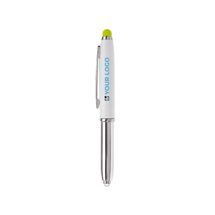 Stylo multifonction coloré avec pointeur et lampe intégrée pratique.