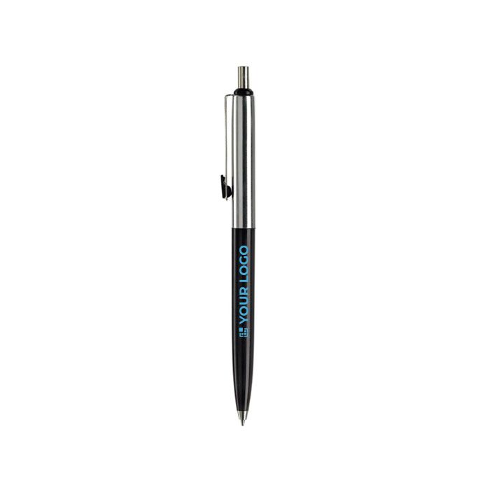 Stylo à bouton-poussoir en métal, détail coloré sur clip, encre bleue