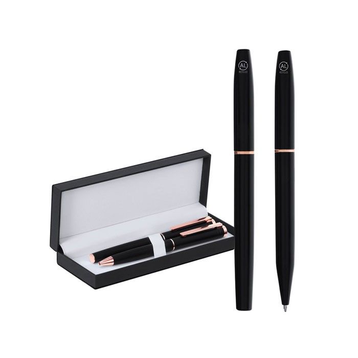 - Duo stylo à bille et roller en aluminium, finition mate premium dans un étui élégant.