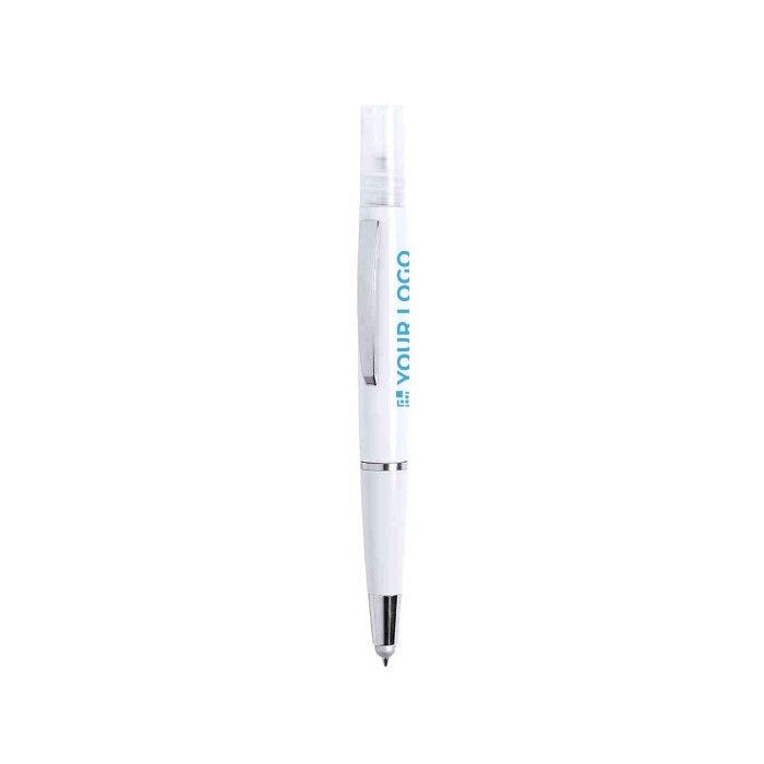 Stylo personnalisable Droplet avec spray intégré et stylet pratique.