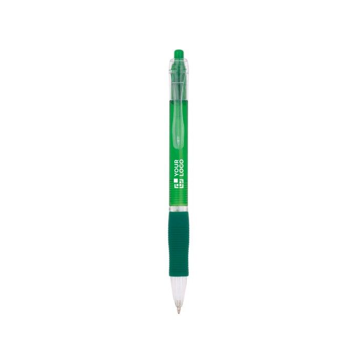Stylo BIC translucide grip caoutchouc, écriture bleue personnalisable.