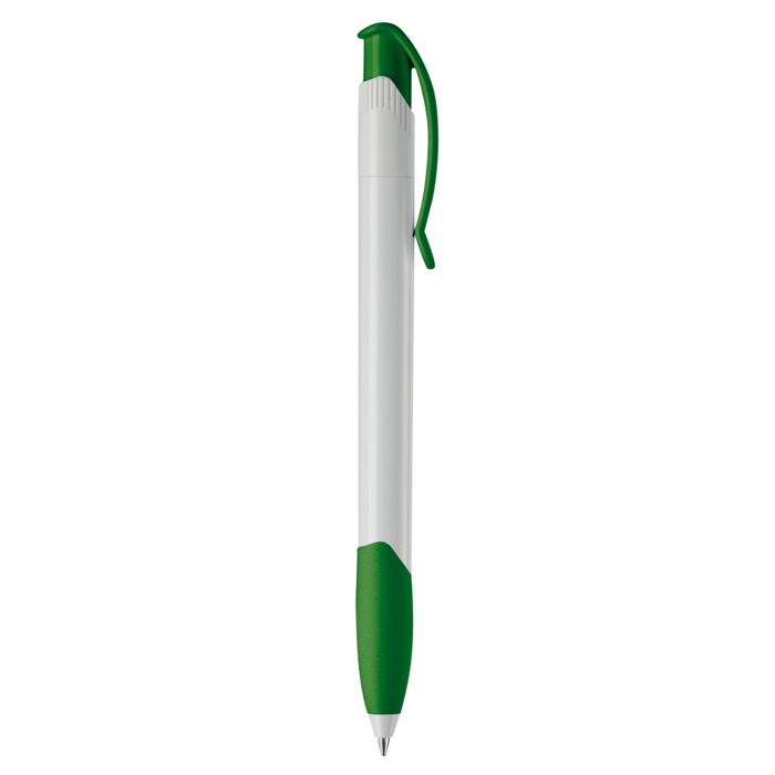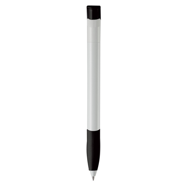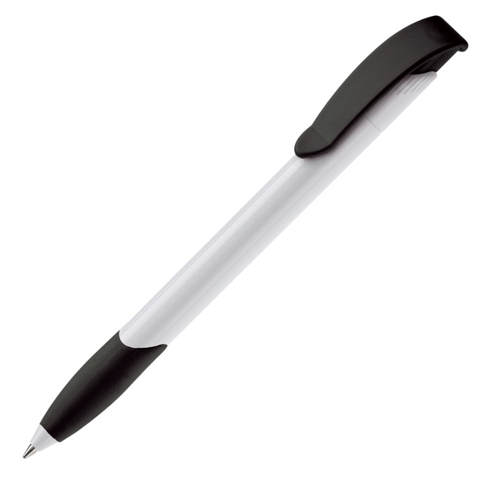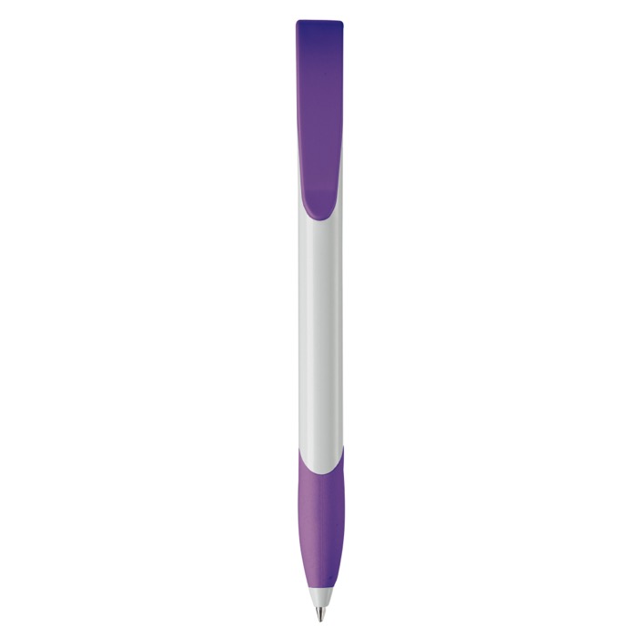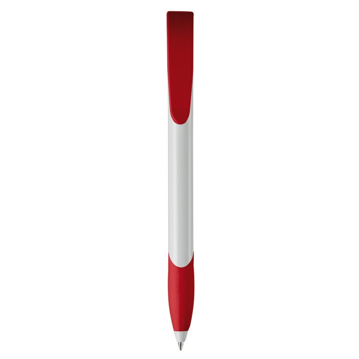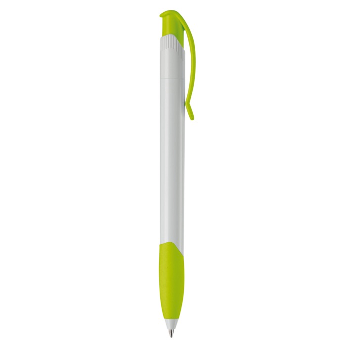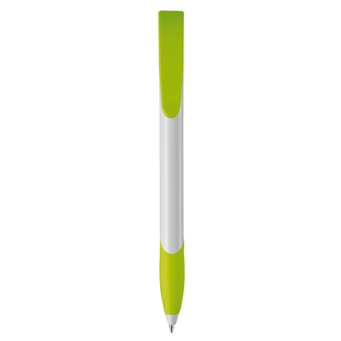 Un stylo en plastique blanc avec un clip incurvé coloré et un grip en caoutchouc, fabriqué en Allemagne, allie design moderne et confort d'utilisation. Sa prise en main ergonomique et son esthétique soignée en font un excellent support pour vos promotions. Le clip coloré permet une intégration visuelle forte de votre marque. Couleurs opaques. Recharge Jumbo. Distribuer cet article lors de salons professionnels ou d'événements renforce une image d'entreprise attentive au bien-être de ses utilisateurs et à l'esthétique, contribuant à une fidélisation par un outil pratique et agréable.