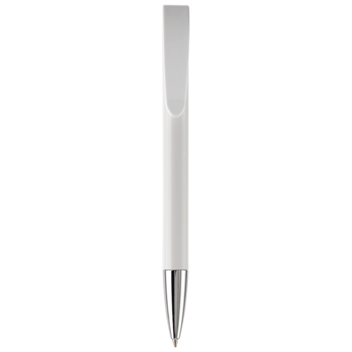 Stylo en plastique blanc, élégant, idéal pour la communication d'entreprise.