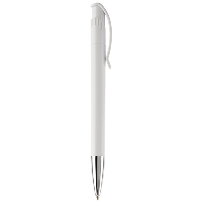 Stylo en plastique blanc avec détails sur le bouton-poussoir