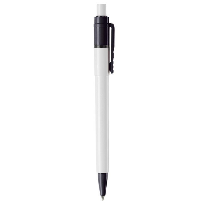 Un stylo blanc avec des détails colorés sur la pointe et le clip, fabriqué en UE, offre une esthétique épurée et professionnelle. Le corps et le bouton poussoir sont blancs. Sa recharge Jumbo synthétique avec encre bleue assure une écriture prolongée, garantissant une durabilité appréciable pour un usage quotidien intensif. Comprend un mécanisme à poussoir et est fabriqué en ABS. Cet instrument d'écriture permet de maximiser votre identité de marque grâce à la personnalisation. Offrir cet article à vos clients ou collaborateurs renforce une image de qualité et de souci du détail, contribuant à une perception positive durable par un outil fiable et élégant, adapté aux environnements professionnels.
