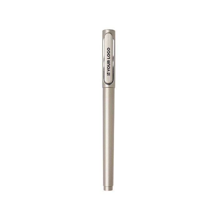 Stylo avec bouchon, écriture fluide et encre bleue corporate.