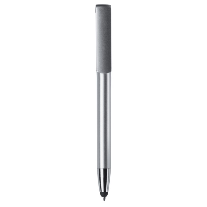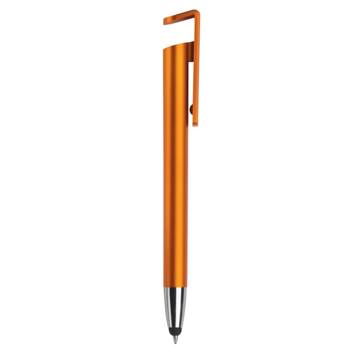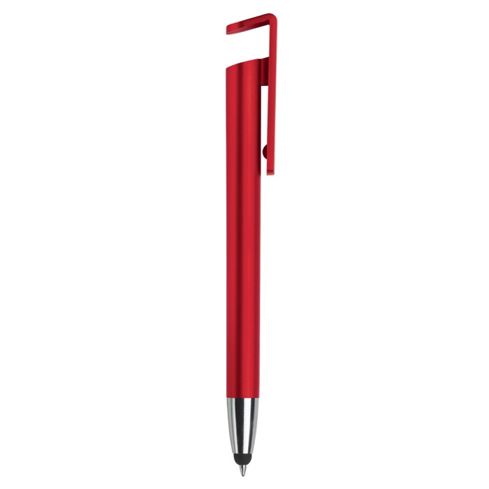 - Stylo en plastique ABS léger avec pointeur intégré et support pour smartphone.