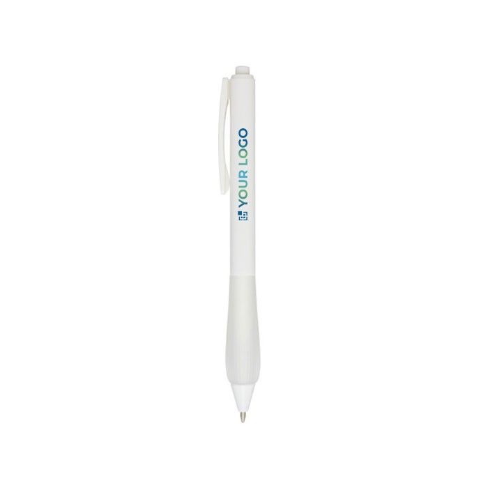 Stylo recyclé, corps caoutchouc, écriture noire, écologique et pratique.