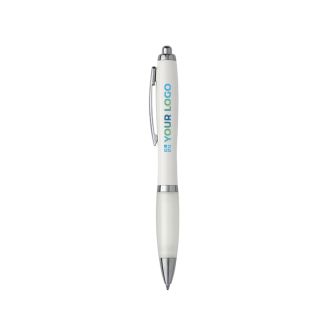 Stylo recyclé avec grip, encre bleue, idéal pour entreprises innovantes.