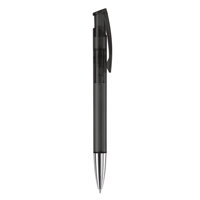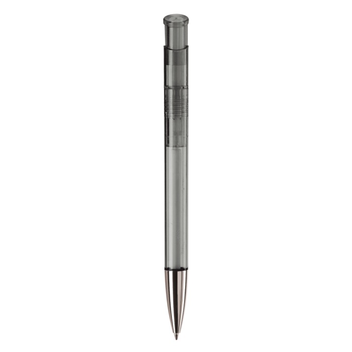 Stylo en plastique transparent coloré avec pointe métallisée élégant.