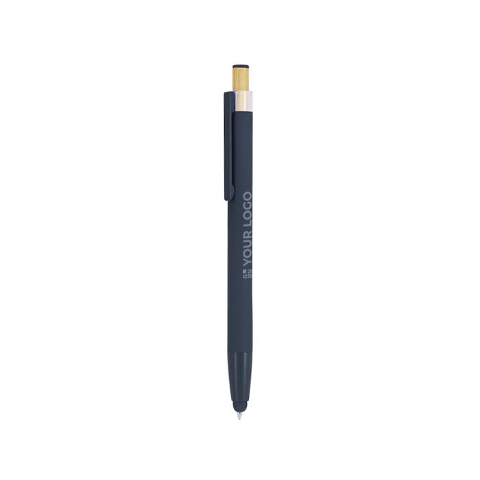 Stylo avec pointe tactile en aluminium et bambou, encre bleue