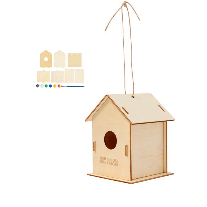 Nichoir en bois avec 6 peintures à base d’eau et un pinceau
