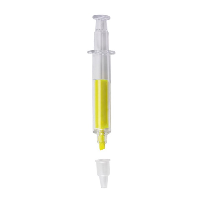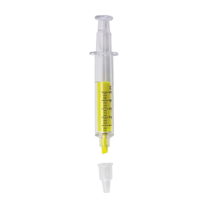Marqueur fluorescent original en forme de seringue, fabriqué en ABS. Ajoutez une touche créative à vos présentations et mettez en valeur vos idées avec un design unique.