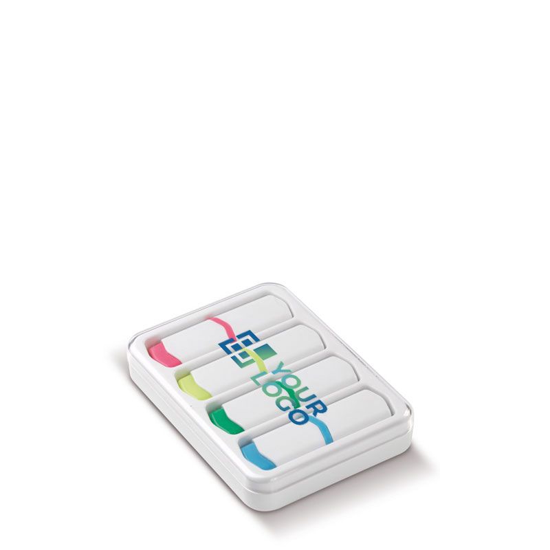 Kit de 4 mini marqueurs colorés présenté en boîte transparente.