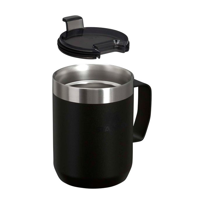 Tasse de camping Stanley Everyday 236 ml en acier inoxydable recyclé. Maintient la boisson à température idéale, embout Tritan™ anti-éclaboussures, facile à sécuriser par pression. Robuste et confortable, parfaite pour café, thé ou autres boissons, intérieur ou extérieur.