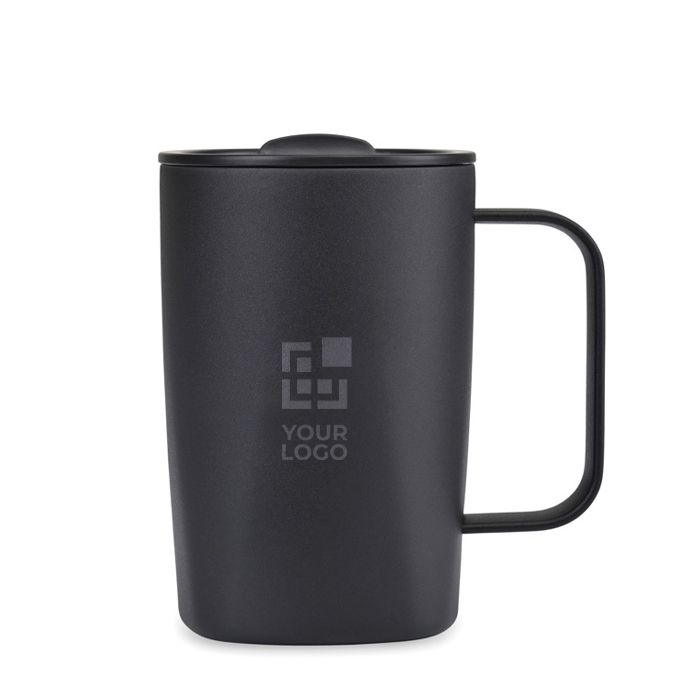 Tasse thermos en acier recyclé, idéale pour café ou thé.