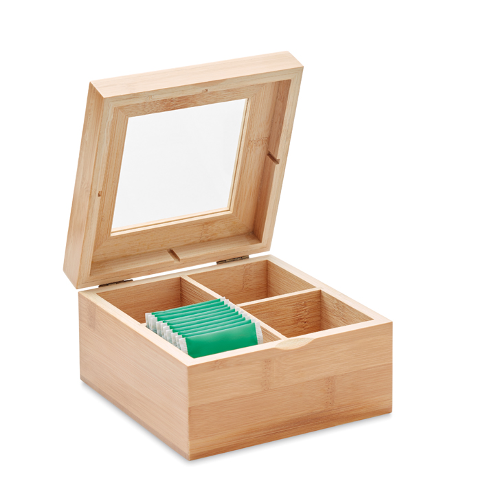 Boîte à thé de 24 sachets en bambou avec couvercle en verre Bamboo