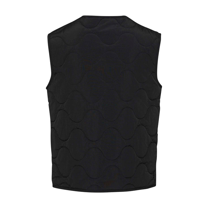 Ce gilet matelassé redéfinit la chaleur sans ajout de volume grâce à son tissu froissé qui apporte une touche distinctive, sans compromettre le confort.