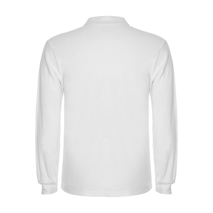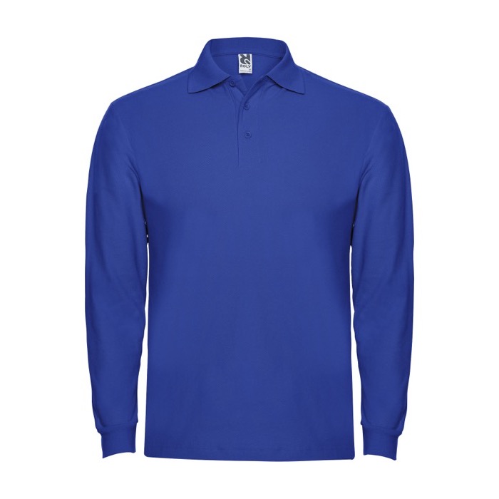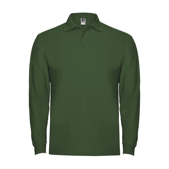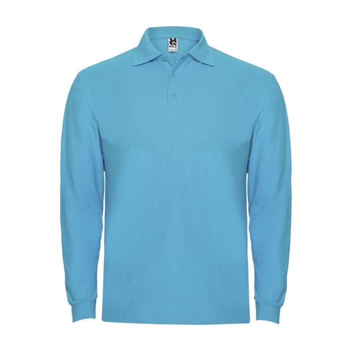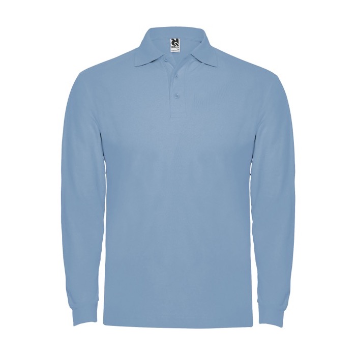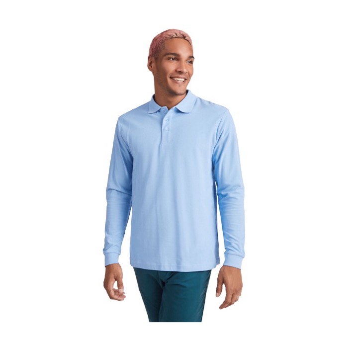 Polo à manches longues avec col côtelé, patte de boutonnage à 3 boutons et poignets côtelés 1x1 en élasthanne. Coutures recouvertes renforcées au col. Poche optionnelle. Étiquette détachable.