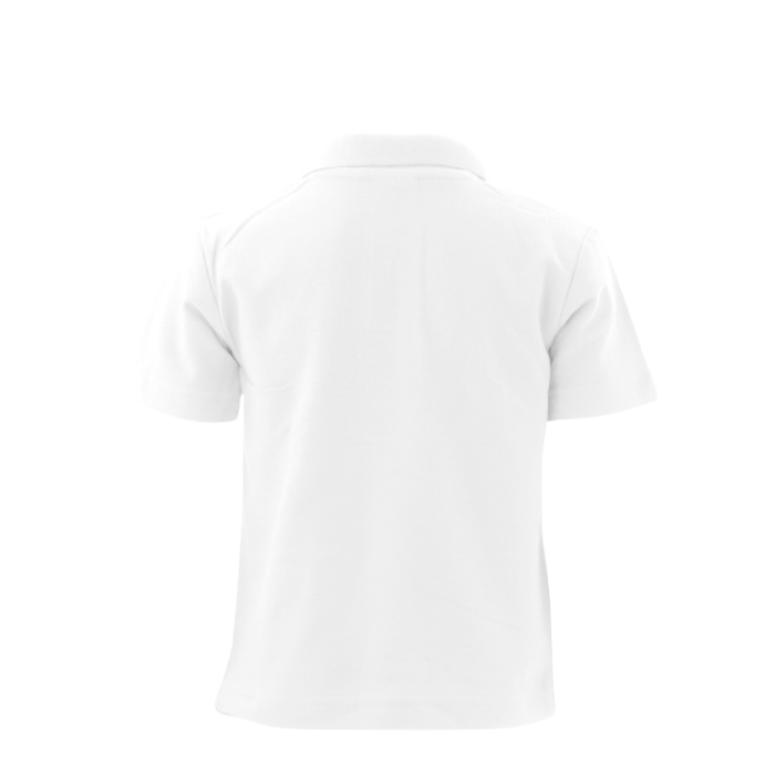Donnez une allure tendance et élégante à vos enfants, en personnalisant avec le symbole de votre établissement ce superbe polo blanc à manches courtes en coton.