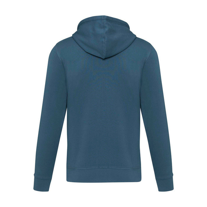 Un sweat à capuche en coton et polyester de 300 g/m² offre une qualité perçue importante pour la promotion de votre marque. Tricoté en 80% coton/20% polyester, il est doté d'une capuche avec cordon de serrage et d'une fermeture éclair, permettant un ajustement du confort et de la ventilation, le rendant polyvalent. Il possède des panneaux latéraux, des poignets et un ourlet inférieur en tricot uni. Ce vêtement est un support efficace pour la visibilité du logo, renforçant l'identité de l'entreprise lors d'événements ou au quotidien. Il a une poche kangourou et une demi-lune, avec une doublure en jersey simple à l'intérieur de la capuche. Les œillets argentés avec logo en relief et la couture en satin à chevrons de couleur contrastée contribuent à une image de marque dynamique et moderne, valorisant l'entreprise par un article fonctionnel et durable pour clients et collaborateurs.