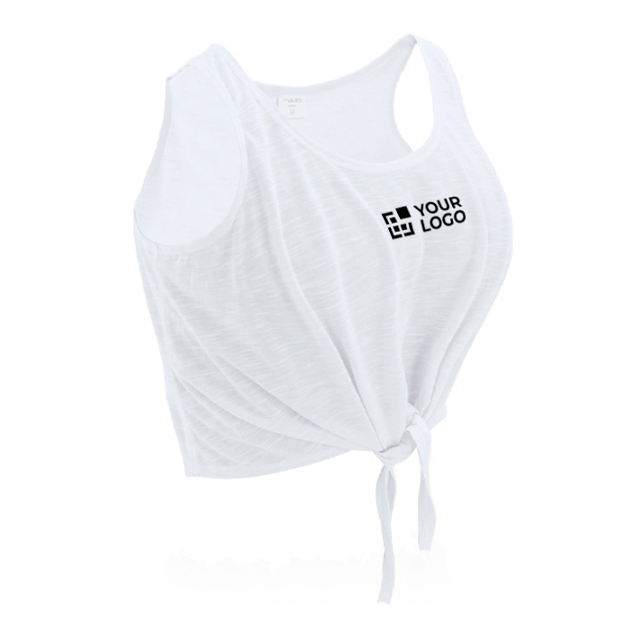 Joli débardeur personnalisé avec un nœud décoratif, il est disponible dans une grande variété de couleurs vives afin de s'adapter à l'identité de la marque.