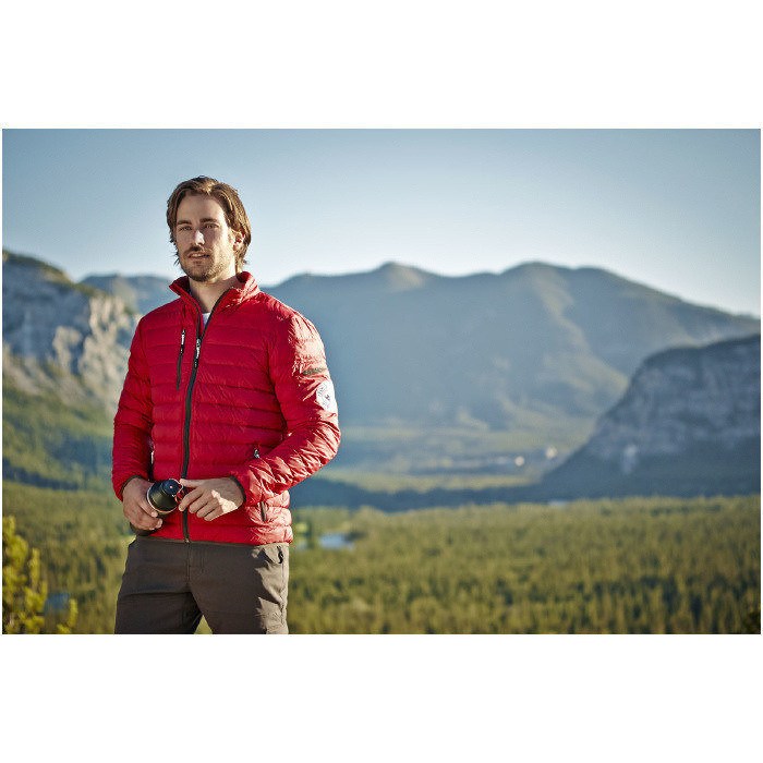 Doudoune isolante légère. Tissu 100% nylon 20D. 80/20 duvet, 115g / m2. Imperméable, respirant et coupe-vent. Rabat intérieur avec protège-menton. Poche sur la manche. Poches zippées avec tirettes faciles à saisir. Poignets et ourlet élastiques de la veste. Étiquette de transfert pour plus de confort.