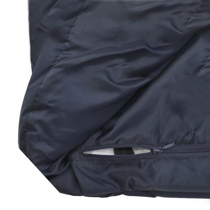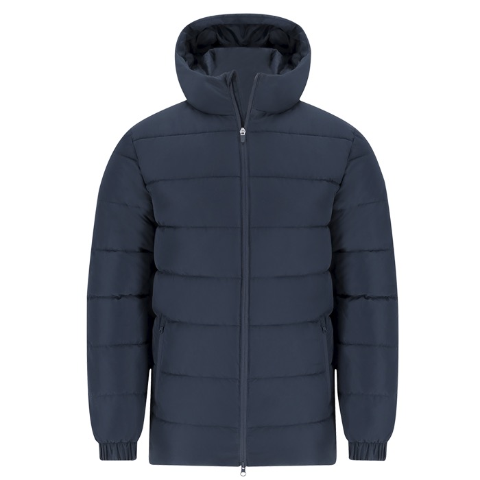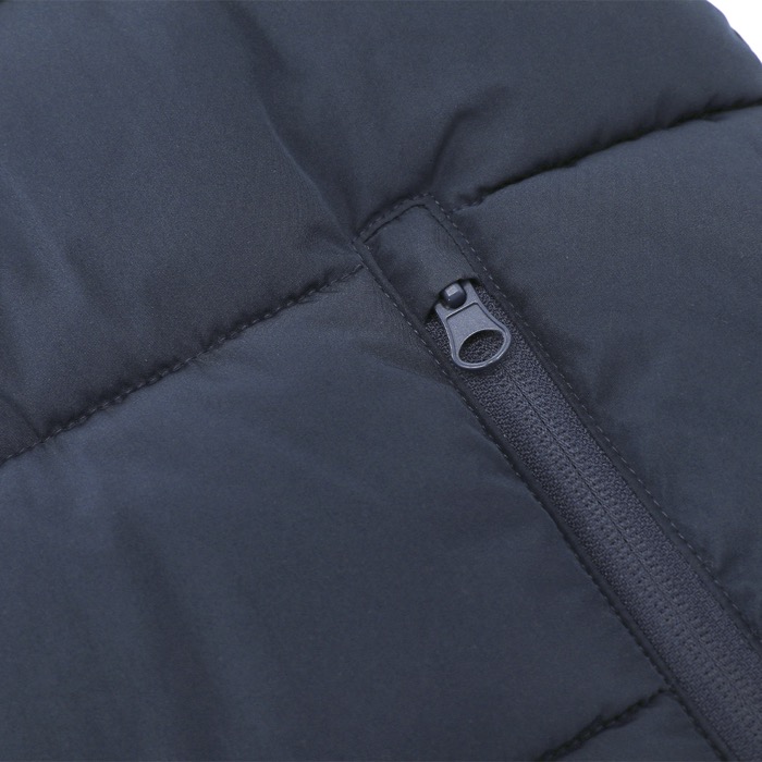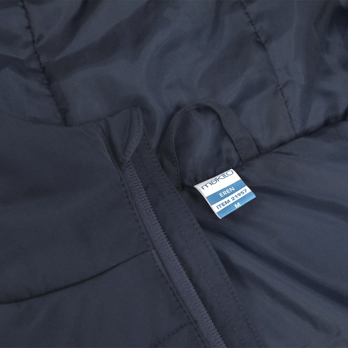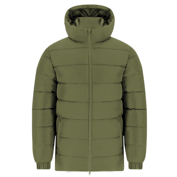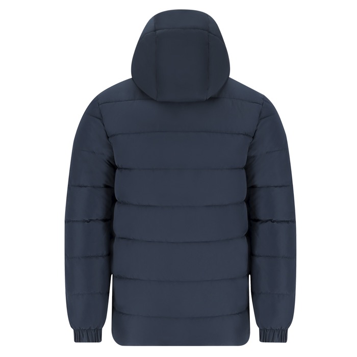 Parka unisexe matelassée avec capuche fixe et visière intégrée. Fermeture zippée ton sur ton avec double tirette et protège-menton. Poignets élastiques pour un ajustement confortable et deux poches latérales avec fermeture éclair assortie.