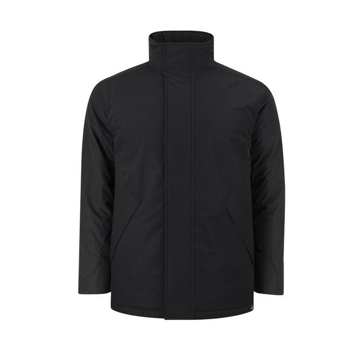 Parka unisexe matelassée, confectionnée en tissu imperméable 100 % RPET (polyester recyclé). Col montant avec capuche ajustable et pliable, intégrée grâce à un système de fermeture par velcro. Fermeture centrale zippée ton sur ton avec rabat de protection. Dotée de poches latérales zippées avec rabat fixe assorti, ainsi que d’une poche intérieure avec fermeture velcro. Poignets ajustables par velcro pour un meilleur maintien. Doublure polaire au niveau du col et à l’intérieur des poches pour un confort accru.